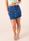 Only teksaseelik Amazing tervitab kandjat võrratu elastsuse ja mugavusega. Mini pikkusega seelikul on ees nööbid, milledest kaks ülemist on avatavad ja alumised disainelemendid. Taskutena on esiküljele pealeõmmeldud kaks terava nurgaga teksataskut. Modelli pikkus on 169 cm ja kannab suurust S. Üldpikkus antud suurusnumbril on 40,5 cm.
