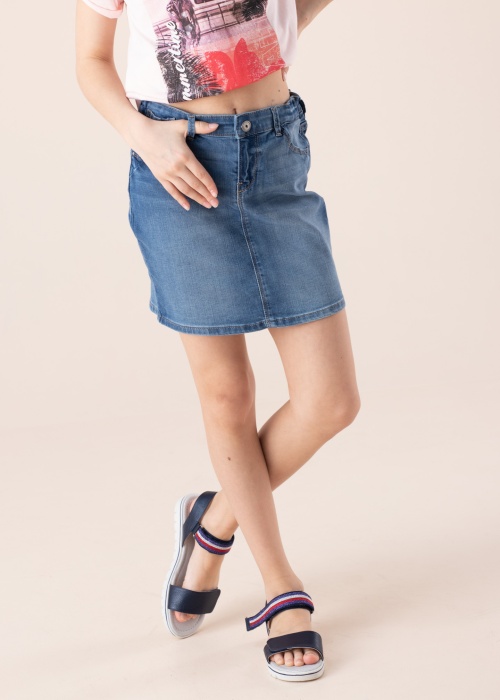 Only teksaseelik Hush on ideaalne valik suvise garderoobi täiendamiseks! Kanna seda nii argipäevaselt kui ka mõnel toredal üritusel! Viie taskuga mudel kinnitub esiküljelt metalse haagi ja tõmblukuga. Elastne värvel on sisemusest reguleeritav tunnelkummi abil, et saaksid rõivale anda omase kuju ja hoidvuse vastavalt soovile. Kerge ja pehme teksakangas omab mõnusat elastsust, tagades hea istuvuse. Modelli pikkus on 147 cm ja kannab suurust 146. Üldpikkus antud suurusel on 37 cm.