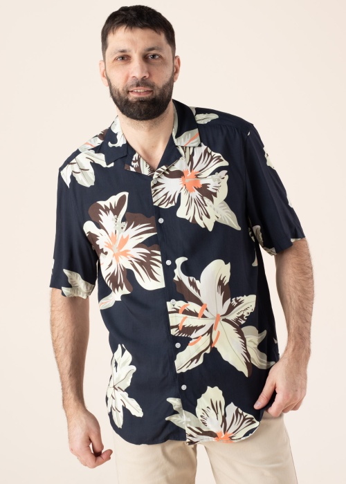 Suvine Only & Sons pluus Dan Life eristab sind hallist massist. Silmapaistev kirju pluus on õhuke ning hästi langev. Ees on nööpkinnitus ning meeleolu loob šeff pinnadekoor. Valmistatud keskkonnasõbralikult- Livaeco by Birla Cellulose on inimtekkeline tselluloosikiud, mis on saadud säästvalt majandatavatest metsadest pärit puidutselluloosist. Modelli pikkus on 188 cm ning kannab suurust L.