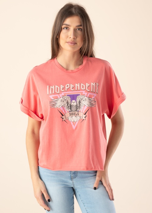Äge Only t-särk Lucy eristab sind hallist massist. Oversized lõikega isikupärane t-särk on ümara kaelusega ja avara istuvusega. Esikülge ilmestab efektne printpilt ning varrukatel on tagasi keeratud viimistlus. Toode annab riietusele viimase lihvi! Modelli pikkus on 178 cm ning kannab suurust S.