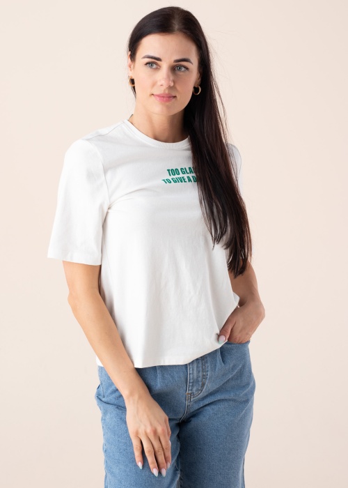 Only T-särk Ulla on lihtne ja argine. Avarama lõikega pluusil on ümar kaelus ja pikemad lühikesed varrukad ning esiküljel tagasihoidlik kirje. Modelli pikkus on 176 cm ja kannab suurust S. Modelli pikkus on 176 cm ja kannab suurust S.