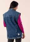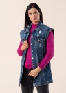 Moodsa oversize lõikega Vila teksatagi Cybil on avara istuvusega, ühendades stiilsuse klassikaga. Trendika kulutatud ja lõhkise tegumoega vest on eest nööpkinnitusega, kus kaks küljetaskut on avatud tegumoega ja kaks rinnataskut on klappidega. Valmistamisel on kasutatud BCI tunnustusega puuvilla, mis on vastutustundlikult kasvatatud ja nahasõbralik. Modelli pikkus on 176 cm ja kannab suurust S. Pikkus turjast alumise servani on 72 cm.