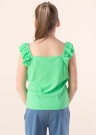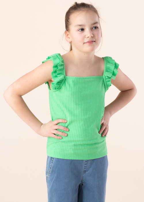Vahva Only topp Nella sobib argiseks kandmiseks. Suvine soonikkoes topp on mänguline ja mõnusalt pehme ning pilku püüavad veetlevad satsid õla kohal. Modelli pikkus on 145 cm ning kannab suurust 146-152.