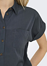 Only naiste triiksärk Hannover on klassikalise disainiga, mis sobib igaks juhuks. Sellel on nööpkinnitus ja tagant pikema tegumoega, mis lisab stiilile huvitava nüansi. Kerge materjal ja avatud tasku rinnal muudavad selle triiksärgi praktiliseks ja mugavaks valikuks igapäevaseks kandmiseks.