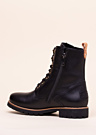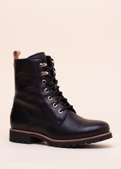 Klassikalised nöörsaapa tegumoega soojad Panama Jack poolsaapad Fara Igloo on valmistatud kvaliteetsest täisnahast, mis tänu oma siledale pinnale on kergesti hooldatavad. Paelkinnis saapa peal laseb need jala järgi parajaks siduda ning siseküljel olev lukk pakub mugavust ning kiirust jalga panemisel. Tagasihoidlik nahkne brändi märgis ilmestab tõmbekeelt ja saapa tagakülge ning sissepressitud kirjutis ehib sääre väliskülge. Sisemus on vooderdatud tõeliselt sooja ja pehme naturaalse karvaga ning sisetald on eemaldatav. Läbiõmmeldud viimistlusega välistald on kumjast sünteetilisest materjalist, omades head haardumist erinevate pindadega. Tallakandil olevad õmblused soovitame enne kasutamist katta mesilasvahaga, et täita avad ja seeläbi takistada niiskuse sattumist jalatsi sisemusse. Kaasas on tekstiilist kott toote turvaliseks hoiustamiseks.