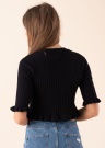Pieces pluus Vella annab enesekindlust. Elastsest soonikust pluus on eest paeladega seotav ja serva ääristav lainetav sats. Kombineeri erinevate riietustega ja loo erinevaid stiile. Modelli pikkus on 178 cm ja kannab suurust S.