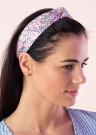 Retrohõnguline Pieces peavõru Lacca on mugava stiilse laiusega ja kaetud kauni mustrilise kangaga, mille tsentris dekoratiivne sõlm.