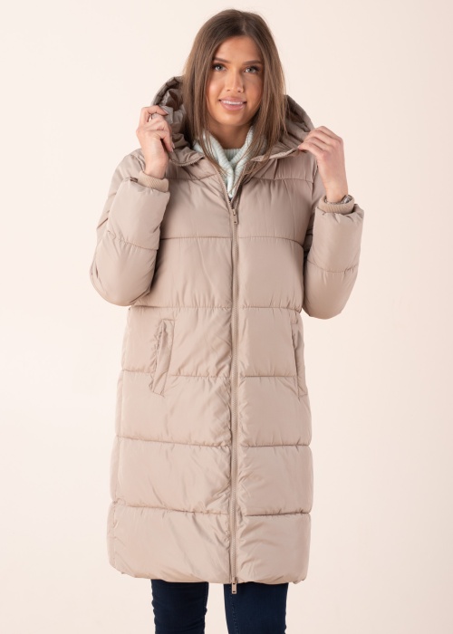 Kena, pikema lõikega Pieces talvemantel on igati lihtne ja kõigega sobituv valik talvehooajaks! Eest sulgub see klassikalise tõmblukuga ning moodustab kõrgema kraeosa, mis pakub kaitset jaheda tuule eest. Kapuuts on fikseeritud tegumoega ning omab õrna soojustust. Käiste otstest ulatuvad välja elastsed soonikud, mis hoiavad mugavalt ümber kandja randme ega lase külmal sisemusse tungida, külgedel asetsevad avatud taskud on suurepärased käte soojas hoidmiseks ning esemete hoiustamiseks. Sisepinda katab libedam polüesterkangas, mis tagab mugavuse riietumisel, libisedes üle aluskihina kantavate rõivaste ning tagades kandjaga kaasaliikuvuse. Paksem soojustus hoiab kandja karge talveilma eest hubaselt soojas. Modelli pikkus on 178 cm ning kannab suurust S. Pikkus turjast alumise servani on antud suurusel 100 cm.