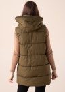 Kerge Pieces vest Bee on praktiline kaaslane kevad-, suve- ja ka sügisilmadega. Hubane vest on kapuutsiga ja pikema tegumoega. Hõlmad kinnituvad lukuga, taskud on avatud tegumoega ning alumine serv vabalt langev. Kapuuts on fikseeritud ja minimalistlik disain avaldab muljet maitseka tagasihoidlikkusega. Modelli pikkus on 125 cm ning kannab suurust S.