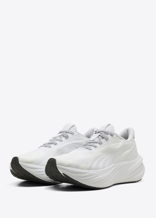 Puma naiste jooksujalatsid Maxima Pro on sportlikud, kerged ja mugavad, sobides hästi nii igapäevaseks liikumiseks kui ka jooksutreeninguks. Need jalatsid muudavad treeningu ja liikumise nauditavaks tänu hästi istuvale kujule ja kindlale toestusele. Pealispinnal on reljeefne muster ning nähtavad brändi märgised, mis annavad modernse ja dünaamilise välimuse. Seotav pael peal tagab reguleeritava sobivuse ja kindla püsivuse jalas; Suurus 39 kaal on 340 g.