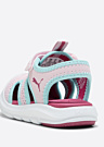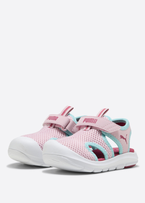 Puma tüdrukute sandaalid Fun Racer on sportlikud ja kerged, pakkudes praktilist lahendust igapäevaseks kandmiseks. Need sandaalid on varustatud kinnise ninaosaga, mis tagab lisakaitse ja mugavuse. Hingav materjal võimaldab jalal hingata, muutes need ideaalseks nii sise- kui ka välistingimustes kandmiseks. Krõps peal ja kummikant servas tagavad kindla istuvuse ja vastupidavuse. Ees on brändi kirje ja välisküljel logo, mis lisavad stiilset välimust.