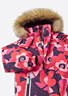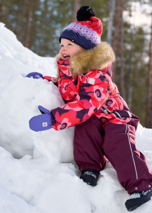 Reima tüdrukute talve kombinesoon Kipina on ideaalne valik külmadeks talvepäevadeks. Kombinesoon on ilmastikukindel ja kaunistatud lillelise mustriga, pakkudes nii stiili kui ka kaitset. Materjal on vetthülgav ja tuultpidav, samas hingav, et tagada lapsele mugavus igas olukorras. Eemaldatav kapuuts karvase äärega ja esiküljel asuvad lukuga taskud lisavad praktilisust, samas kui tunnelkumm keskkohas tagab parema istuvuse.