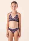 Бикини Name It Zashan для девочек. Шнурок на шею от верхней части регулируется, застёгивается сзади пластиковой застёжкой. Нижний край из эластичной резинки, украшенной блестящей нитью и воланом. Резинка трусиков украшена такой же нитью и вокруг тела - воланом. Модель носит размер 146.