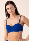 Красивый бюстгальтер бикини в стиле балконет, от бренда Lauma, идеален для блистательной женщины. Поверхность изделия декорирована эффектным перехлёстом между чашечками. Чашечки с уплотнителем, на косточках в нижней части, обеспечивающими хорошую посадку. Регулируемые изящные бретели обеспечивают оптимальную посадку. На задней части бюстгальтера простая застёжка из пластика. Рост модели 176 см. Демонстрируемое изделие размер 75B. Состав материала: полиамид 80%, эластан 20%. Цвет: синий
