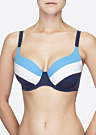 Бюстгальтер-бикини Lauma Curacao с чудесным действием отлично подходит для женщины, любящей простоту и комфорт. Мягкая набивка и поддерживающие арки обеспечивают приятную стабильность и комфорт. Верхняя часть груди украшена полосками. Плечевой ремень можно регулировать в зависимости от владельца. Сзади удобно закрывается металлической проушиной. Рост модели 177 см, размер - 75B. Материал: нейлон/полиамид 85%, эластан 15%. Цвет: темно-синий / синий / белый.