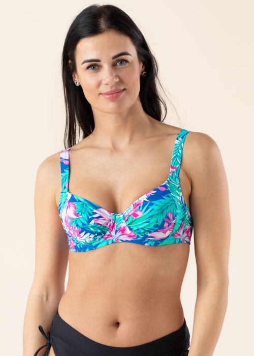 Красивый бюстгальтер бикини Damella подходит для наслаждения летними днями. Женственный бюстгальтер бикини- узор в цветок и узор в цветок. Удобства добавляют поддерживающая арка и длина брителей регулируется. Рост модели - 176 см и носит размер 38B.
