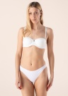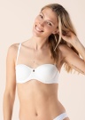 Простой классический белый бюстгальтер Marc and André отлично подходит для повседневной носки. Опора обеспечивается набивкой на внутренней поверхности и опорными арками. В центре прекрасная золотая деталь. Плечевые лямки регулируются, бюстгальтер закрывается на спине двухступенчатой петлей для застежки, имеет три разных уровня затяжки. Рост модели 177 см, размер - 75B. Материал: нейлон/полиамид 85%, эластан 15%. Цвет: белый.