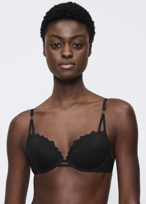 Бюстгальтер от Triumph отличается изысканным дизайном и регулируемыми бретелями. Он украшен кружевом и имеет поддерживающие косточки и мягкие чашечки, обеспечивая комфорт и элегантность.