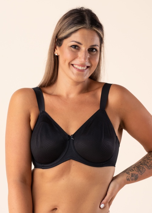 Женский бюстгальтер без подкладки от Triumph отлично подходит для повседневной носки. Режим Minimizer обеспечивает идеальную оптическую иллюзию, создавая впечатление меньшего размера груди благодаря изысканному крою и тщательно подобранным материалам. Поддержка обеспечивается поддерживающими дугами под грудными клетками. Милый галстук в центре придает индивидуальность. Плечевые ремни можно отрегулировать под пользователя. На спине крепление на оси, обеспечивающее три уровня натяжения. Рост модели 177 см, носит размер 85C. Материал: хлопок 71%, эластан 29%. Цвет: черный.
