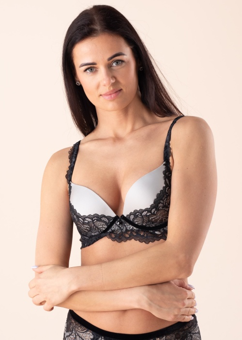 Пуш-ап бюстгальтер на косточках от бренда Lauma, выполненный из гладкой ткани, декорирован кружевом с красивыми узорами. Изящные регулируемые бретели с отделкой из кружева. На спине расположена 4-рядная застёжка на крючках. Рост модели 176 см. Демонстрируемое изделие: размер 75 В. Состав материала: полиамид 70%, полиэстер 15%, эластан 15%. Цвет: чёрный