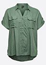 Блузка Vero Moda Curve для женщин отличается простым и приятным дизайном с просторной посадкой и удлиненной спинкой. Она изготовлена из мягкого материала LENZING™ ECOVERO™, который получают из сертифицированных возобновляемых древесных источников с использованием экологически чистого производственного процесса. Эта блузка идеально подходит для повседневного ношения. У нее есть застежка на пуговицы спереди, нагрудный карман с клапаном, пуговицы на рукавах и разрезы по бокам.