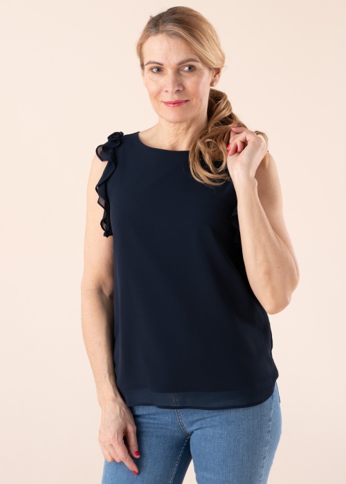Очаровательная блуза Esprit подходит как для повседневнего, так и представительного дня. Женственная блуза- без рукавов и прямой дизайн. В качестве дополнительного плюса товар - воздушный и лёгкий. Внимание привлекают привлекательный волан на плече , также на холке- застёжка на пуговицы. Рост модели - 176 см и носит размер S.