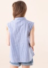 Блузка Femma от Name It стильная и красивая. Модная блузка с полосатым узором имеет воротник на стойке, пуговицы спереди и декоративный узел внизу. Рост модели 147 см, изделие в размере 146.