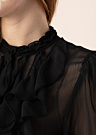 Эта женская блуза от JDY излучает очарование и романтику, подчеркивая вашу женственность и стиль. Прозрачная ткань и изящные рюши на передней части делают её особенно привлекательной, а застежка на пуговицы спереди добавляет удобства. Модель с ростом 174 см носит размер S.