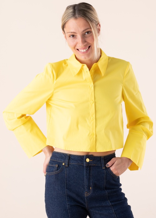 Красивая блуза Somethingnew подходит для повседневного ношения. Молодёжная укороченная длина тела блуза- лёгкая и укороченная длина тела. Блуза застёгивается застёжка на пуговицы и на концах рукавов есть пуговица. Рост модели - 177 см и носит размер S.