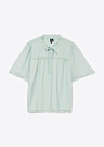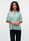 Блузка Vero Moda для женщин Leah отличается мягкостью и женственностью. У нее короткие рукава и завязывающаяся лента на воротнике, что придает ей изысканный вид. Декоративные элементы на воротнике и груди добавляют особый шарм этой модели.