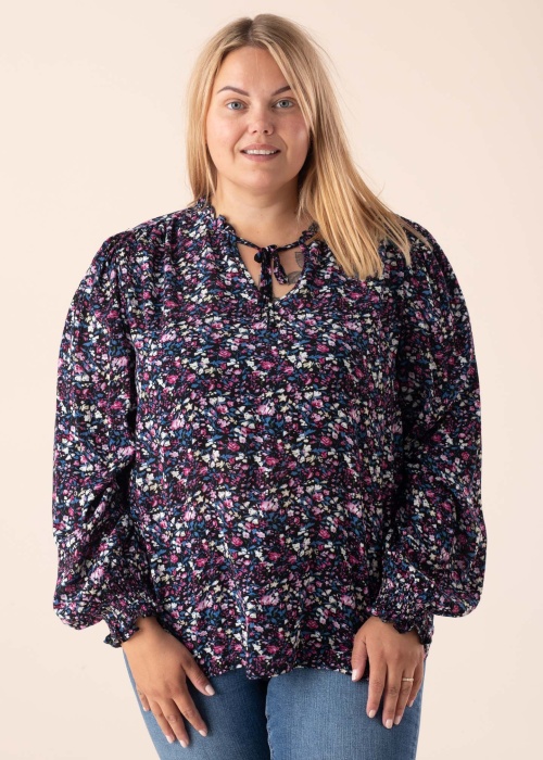 В симпатичной блузке Fransa Plus Size Liza всегда будете чувствовать себя комфортно. Вырез горловины украшен очаровательными оборками, рукава - с резинками по краям. Красивый узор добавляет эффектности. Рост модели 167 см, носит размер 46.