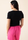 Молодёжная блуза Noisy May подходит для дней разного характера. Современная блуза- v-горловина и укороченная длина тела. Удобства добавляет эластичность материала выразительности добавляет интересный дизайн на горловине. Рост модели - 176 см и носит размер S.