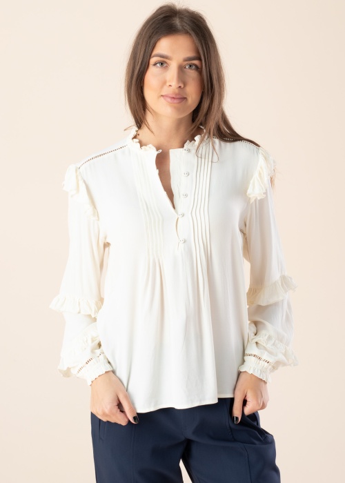 Очаровательная блуза Mexx сделает каждый день особенным. В винтажном стиле просторный дизайн блуза- хорошо обвисающая и просторный дизайн. На горловине имеет застёжка на пуговицы , привлекательные воланы добавляют выразительности и выразительности добавляют дизайнерский шов. Рост модели - 178 см и носит размер S.