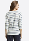 Женская блузка Tom Tailor с круглым вырезом и приталенным кроем аккуратно подчёркивает фигуру и хорошо сидит. Рукава длиной три четверти делают её удобной для повседневной носки. Мягкий эластичный материал приятен к телу, а полосатый рисунок и надпись на груди добавляют модели выразительности. Отличный вариант на каждый день: комфортно, просто и стильно.