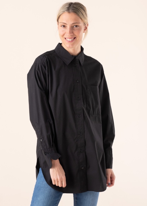 Блузка от Tom Tailor – хороший выбор для тех, кто ценит классику. Стильная блузка имеет удлиненный фасон и свободную посадку, эластичность материала добавляет комфорта при ношении. Спереди находится застежка на пуговицы, на груди расположен открытый карман, снаружи находятся разрезы. Рост модели 177 см, изделие в размере S.