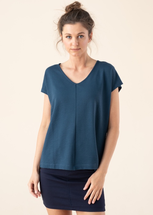 Со вкусом блуза Tom Tailor отличается многогранностью. V-горловина блуза- прямой дизайн и просторный дизайн , также в качестве дополнительного плюса товар - мягкий и эластичный. Выразительности добавляет рельефный узор на передней стороне , также дизайнерский шов. Рост модели - 177 см и носит размер S.