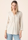 Лёгкая блуза Tom Tailor подходит для повседневного ношения. Полосатый узор блуза- рукава 3/4 и тонкий покрой. На горловине имеет застёжка на пуговицы , на груди- карман с пуговицами , также на концах рукавов пуговица. Сочетай с разной одеждой и создавай свежий стиль! Рост модели - 177 см и носит размер 36.