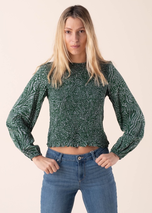 Блуза Vero Moda Vilba классного покроя с нежным узором из приятной к телу вискозы стильно и удобно носить на каждый день. Блуза с круглым вырезом горловины украшена рельефной резинкой, на объёмных рукавах эластичные рукавах резинки. Блуза изготовлена из сертифицированного волокна LENZING ™ ECOVERO ™, полученного из сертифицированного, древесного источника с использованием всех процессов, следующих стандартам защиты окружающей среды. Рост модели - 177 см и носит размер 36.