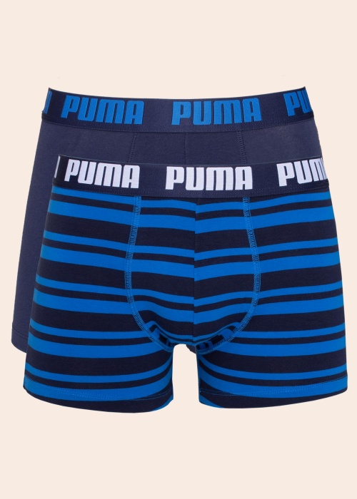 Эластичные боксеры из дышащего хлопка Puma Everyday. Мягкая на ощупь ткань и широкий эластичный пояс обеспечивают свободу движения. Простой повседневный комфорт обеспечен! В упаковке 2 пары боксеров. Состав материала: хлопок 95%, эластан 5%. Цвет: синий/узорчатый