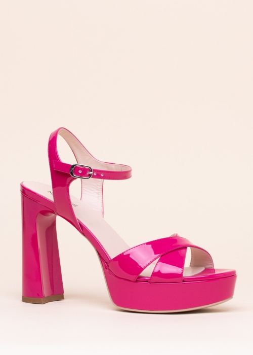 Эффектный босоножки NeroGiardini - смелый стиль. Модный и высокий каблук босоножки- блестящий и платформа. Поверхность изготовлена лакированная кожа , акцента добавляет пряжка , также удобства добавляет резинка на внешнем боку. Как подкладку, так и стельку покрывает кожа , также подошва из синтетического материала. Отличный выбор, если Вы цените смелый стиль