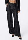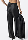 Althea женские праздничные брюки черного цвета - это стильная и модная одежда с широкими штанинами, которые создают праздничное настроение благодаря своему красивому внешнему виду. Они изготовлены из тонкой и блестящей ткани, что придает им элегантность и утонченность. Пояс застегивается на пуговицу и молнию спереди, а по бокам расположены удобные карманы. Модель имеет рост 176 см и носит размер 38.