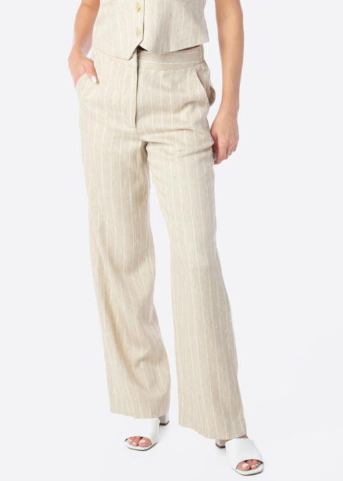 Женские брюки EsQualo отличаются элегантным и летним дизайном с полосатым узором. Они легкие и удобные, с открытыми карманами по бокам и эластичной вставкой на поясе. Модель имеет рост 176 см и носит размер 36.