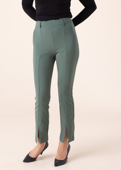 эластичная ткань создаёт смелый и уверенный в себе образ. Рост модели: 178 см. Демонстрируемое изделие: размер 36. Состав материала: полиэстер 100%. Цвет: зелёный