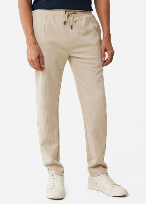 Мужские брюки от Mexx представляют собой стильный и удобный вариант для повседневной носки. Они имеют эластичный пояс и современный дизайн с завязками на талии. Спереди расположены открытые карманы, а сзади - декоративный карман, что добавляет практичности и современного стиля.