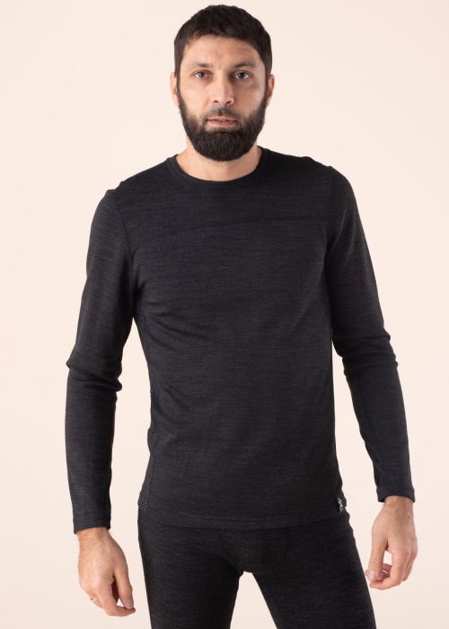 Термоблуза Bula подходит в качестве обеспечивающего тепло слоя. С обтягивающим покроем термоблуза- с круглой горловиной и с длинными рукавами также на внешних боках имеет дышащие вставки. Рост модели - 188 см и носит размер L.