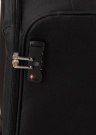 Поверхность из текстиля, а основное отделение открытывается на замок. Практичности добавляет карман с молнией, куда удобно разместить маленькие предметы и удобства добавляют ремень. Хорошую манёвренность придают колёса, тихо вращающиеся, и встроенная телескопическая ручка. Чемоданы советуем перевозить на всех четырёх колёсах, если использовать только два колеса, то они неравномерно изнашиваются, при поломке это не подлежит предъявлению претензии. Вес товара - 2100 г. Чемоданы возможно заказать только с доставкой курьером!