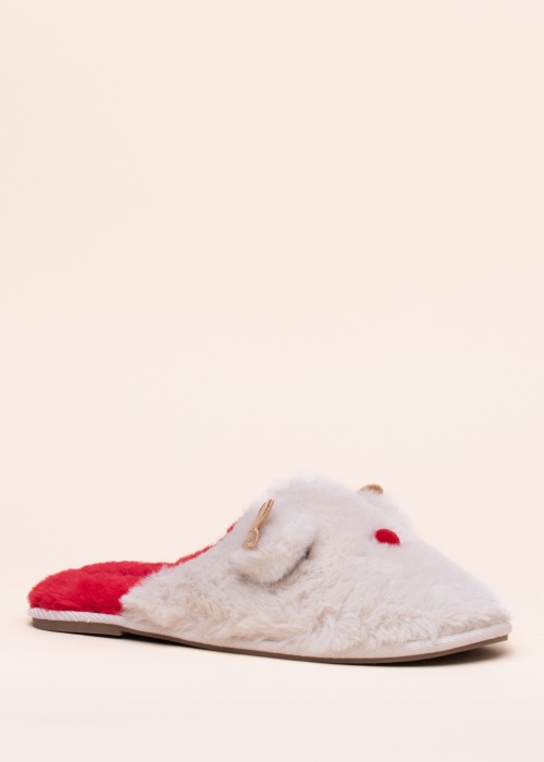 Симпатичные тапочки Vero Moda создают каждый день рождественское настроение. Изображающие оленя тапочки покрыты меховым текстилем. На поверхности изделия расположен красный нос, вышитые закрытые глаза, ушки и небольшие золотые рожки. Внутренняя отделка и стелька с мягкой отделкой покрыты красным, мягким и уютным меховым текстилем с толстым ворсом. Низкая резиновая подошва с надёжным протектором, предотвращающим риск скольжения. Прекрасный выбор для рождественских праздников. Вес размера 39: 166 г. Цвет: белый/красный