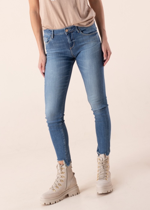 Джинсы Guess с талией средней посадки и женственным узким кроем прекрасно объединяют стиль и качество. Изделие с застёжкой на удобную молнию и пуговицу. По бокам расположены открытые карманы, в правом из которых дополнительный кармашек. На задней части изделия открытые карманы, правый из которых декорирован минималистическим логотипом бренда. Красиво выбеленная ткань. Стильные необработанные края штанин с разрезами. Эластичность ткани обеспечивает комфорт. Рост модели 177 см. Демонстрируемое изделие размер 27/30. Состав материала: вискоза 43%, хлопок 35%, лиоцелл 16%, эластомультиэстер 5%, эластан 1%. Цвет: синий