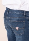 Модный джинсы Guess подходят для дней разного характера. Покрой Slim Fit джинсы- зауженные штанины и Средняя посадка талии. Пояс застёгивается на пуговицу и замок, спереди и сзади имеет открытый карман. сзади- знак бренда. Рост модели - 153 см и носит размер 147.