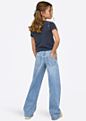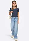 Только что поступившие джинсы Judy-O - это стильные брюки для девочек с прямым кроем и широкими штанинами. Они имеют потертый дизайн и эластичную ткань, что делает их идеальными для повседневной носки. Пояс застегивается на пуговицу и молнию спереди, а также имеются открытые карманы спереди и сзади.